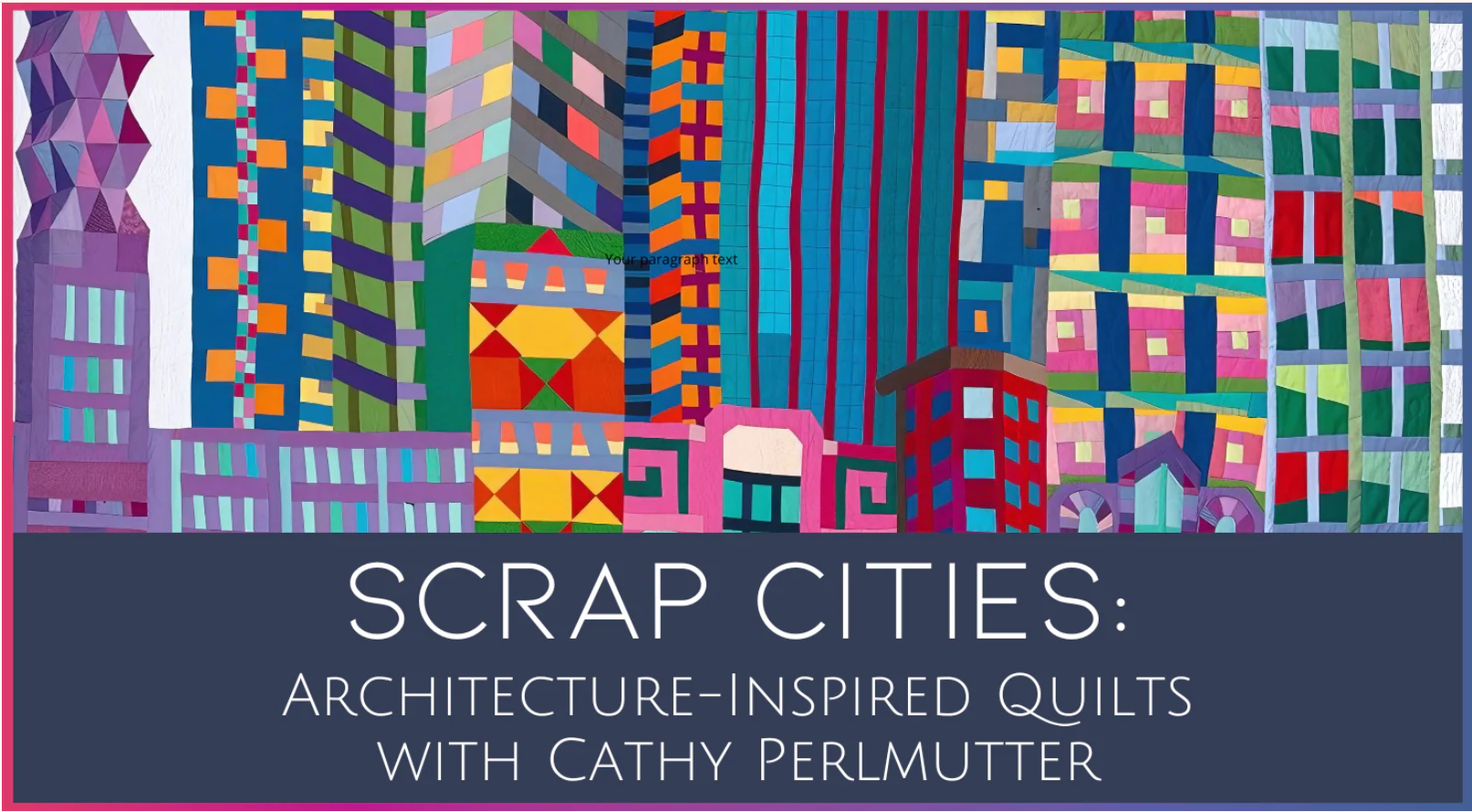 Have you ever dreamed of crafting a quilt that captures the essence of your favorite building, neighborhood, or city? Quilter Cathy Perlmutter is here to turn that dream into a reality. This course invites you to immerse yourself in the fun of creating your own architectural quilt masterpieces. From bustling cityscapes to charming, whimsical locales, Cathy's quilts are brimming with overlapping buildings and delightful details that might even get you a little lost—just like wandering through a real city! You’ll explore a range of techniques, blending piecing and applique to bring your urban visions to life, whether you prefer machine or hand stitching.